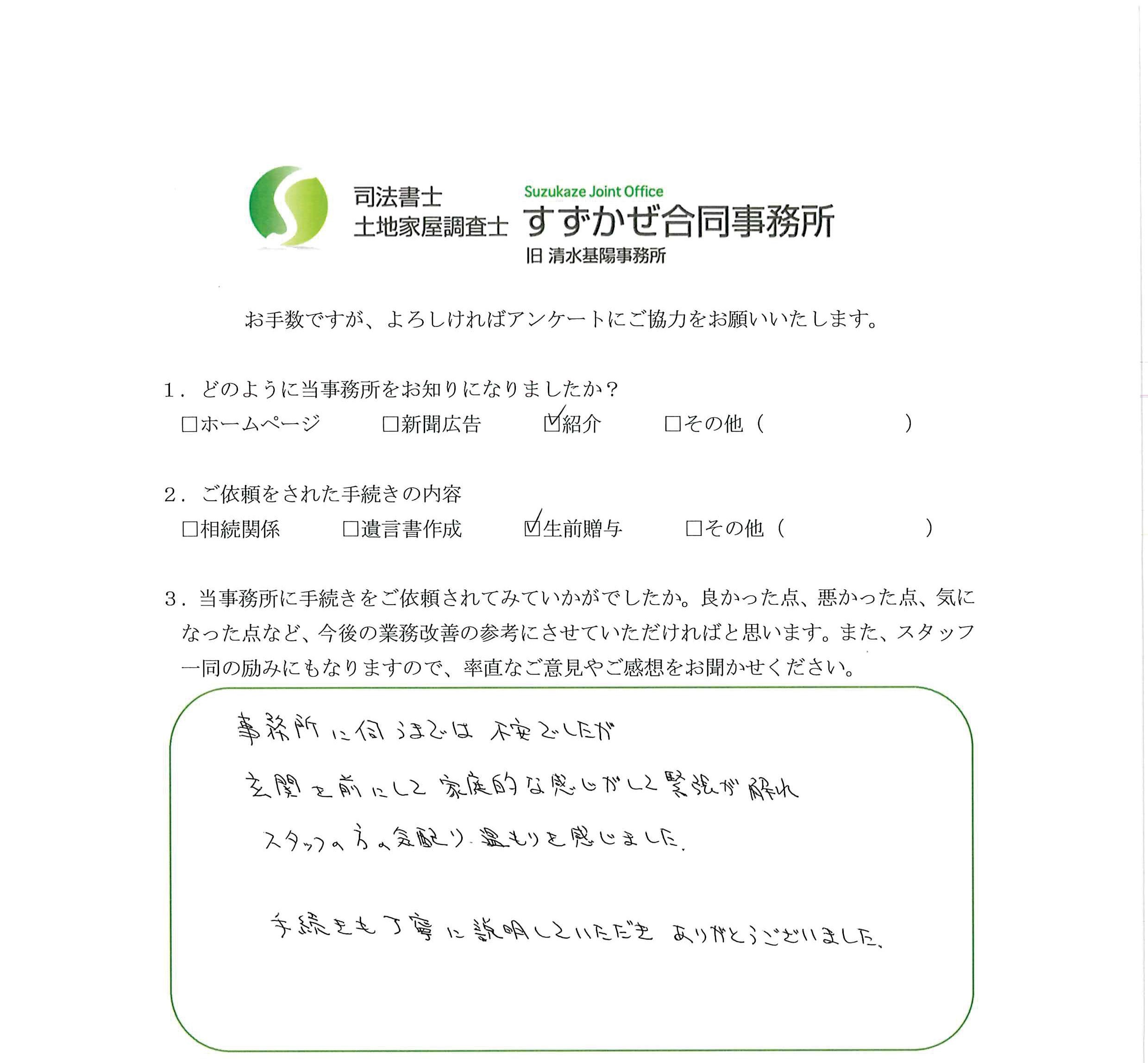 江別市 I.Y様 生前贈与手続 NEW!