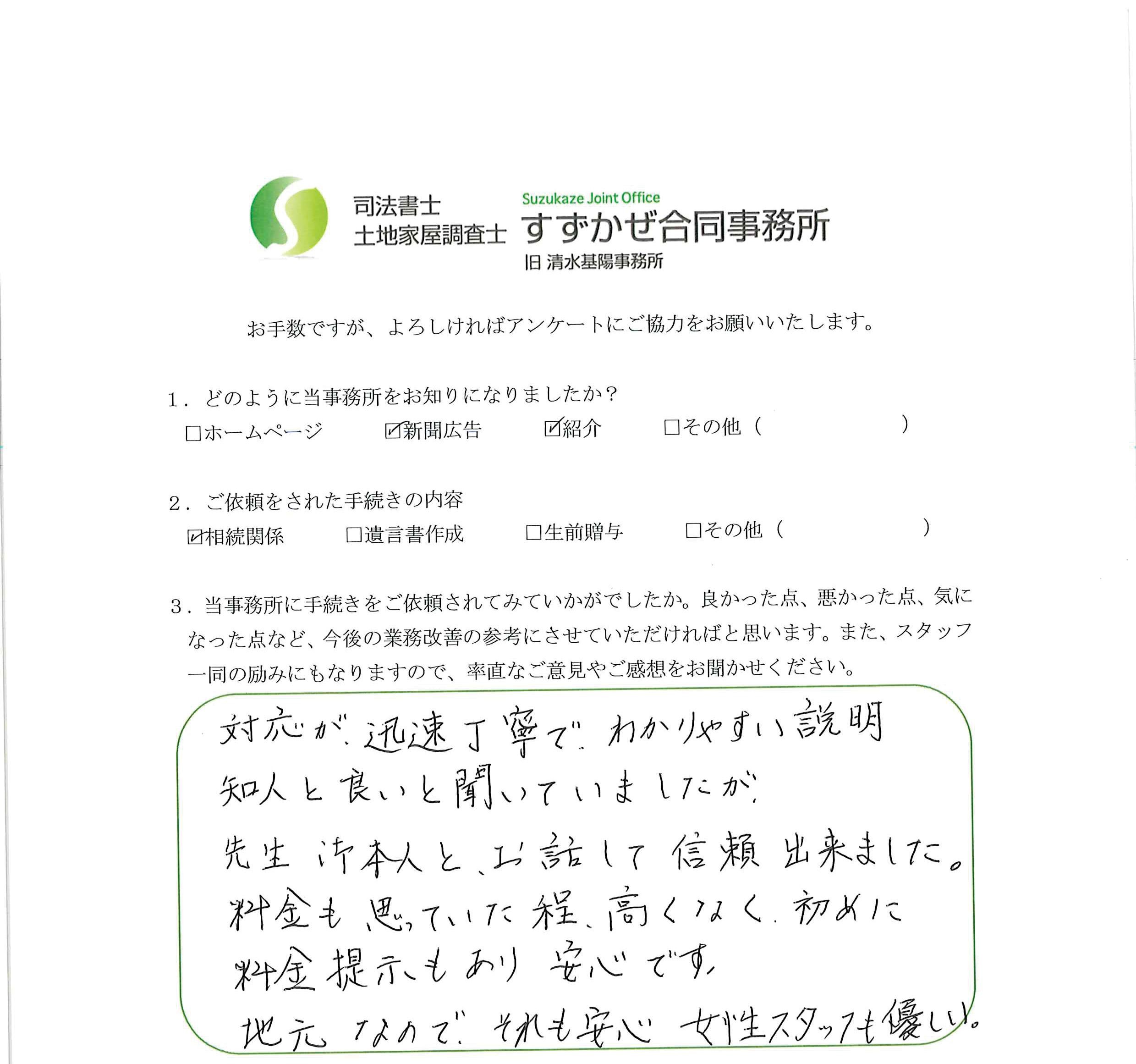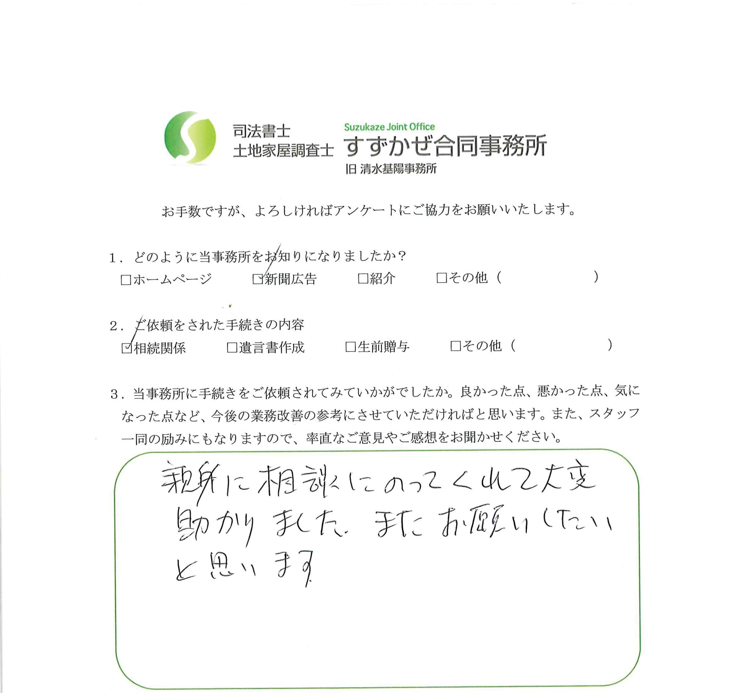 札幌市厚別区 Y.Y様 遺言