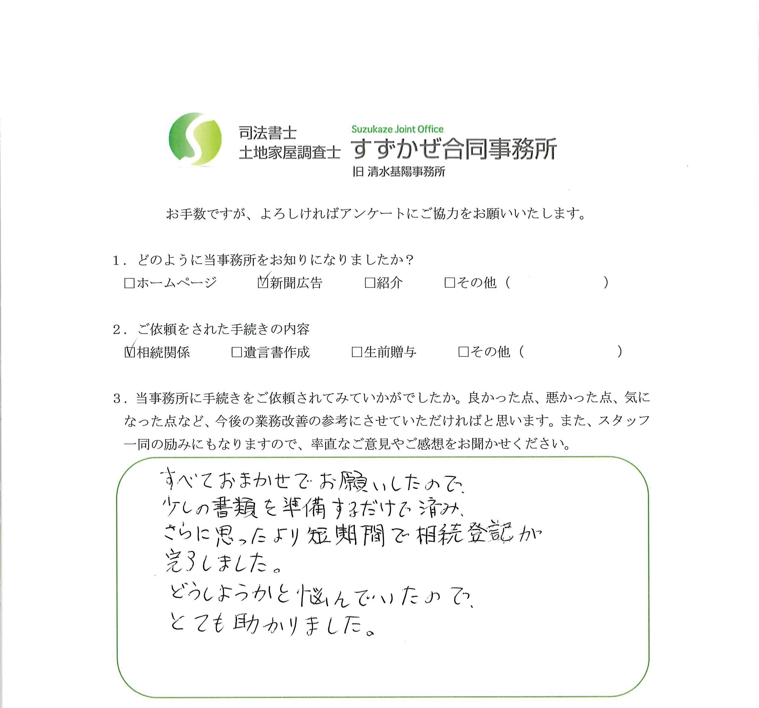 厚別区 S.A様 相続手続